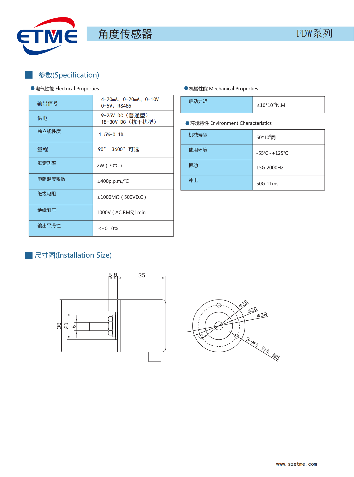 FDW角度位移傳感器線性精度高,機(jī)械壽命長,分辨率高,動態(tài)噪聲小,安裝方便可靠,輸出信號可選。